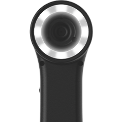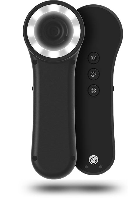 Während der Untersuchung siehst du das Live-Kamerabild im zentralen Sichtkreis. Beleuchtung und Farbmodi steuerst du direkt in der Software oder über meine Knöpfe – inklusive Auslösen der Bildaufnahme.